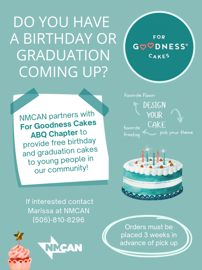 *This is only available to the young people in the NMCAN community. All orders/requests must be communicated to NMCAN AT LEAST 20 DAYS before the cake is needed.