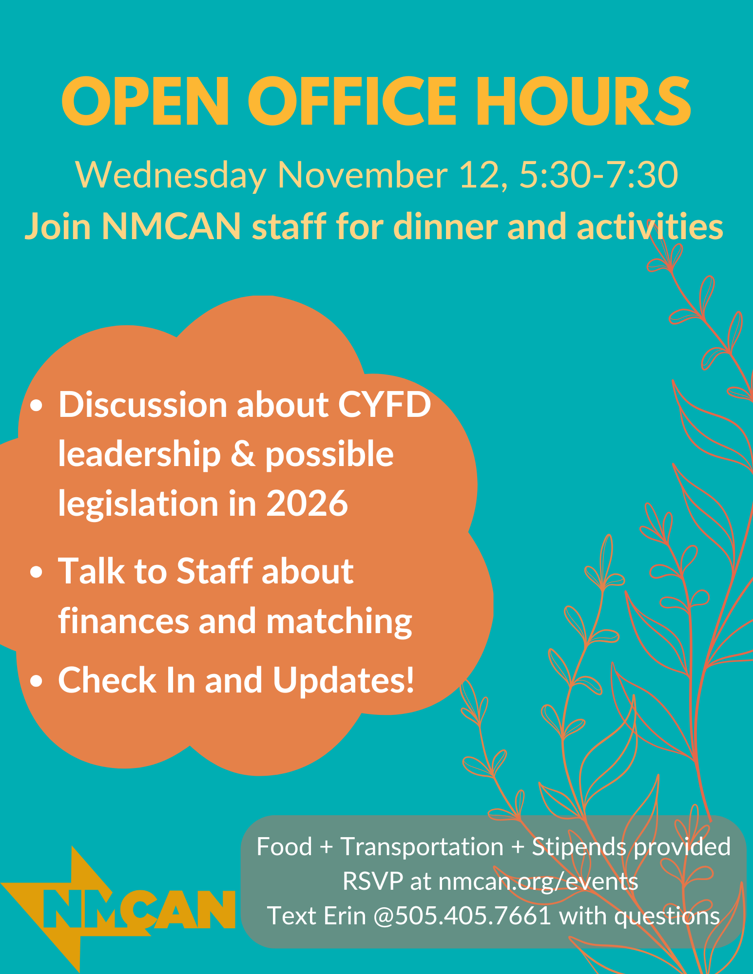 RSVP at nmcan.org/events Transportation, Childcare and Food provided. Open to Friends and Family. Contact Marissa for any questions 505-810-8293